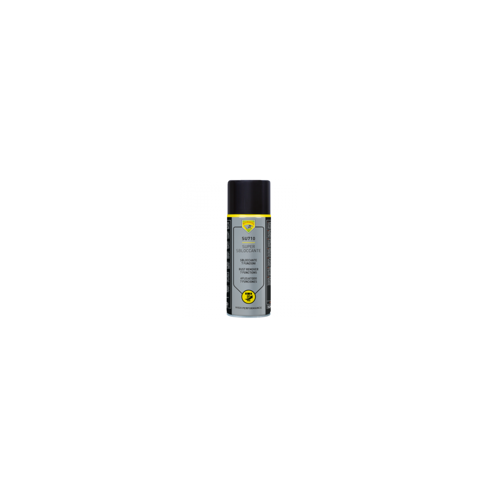 Supersbloccante è un prodotto multiuso con 7 funzioni: sbloccante, protettivo, lubrificante, idrorepellente, anticongelante, sgrassante, dielettrico. Fluido a forte potere penetrante. Scioglie la ruggine, le incrostazioni e la salsedine sbloccando in pochi istanti dadi, viti, bulloni, cerniere, cuscinetti, serrature e tutti gli accoppiamenti meccanici. Non intacca metalli e gomma ed esercita un’ utile azione lubrificante e protettiva. Supersbloccante non contiene tricloroetilene a rispetto dell’ambiente e di chi lo usa. Specifiche militari: MIL-C-23411 MIL-C-16173- DEF STAN 68-10/2 NATO C-634.