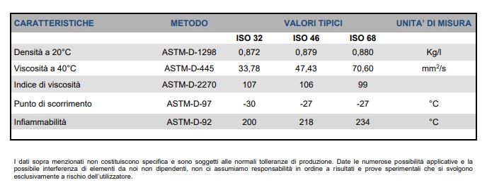 Lubrificante speciale di alta tecnologia per comandi oleodinamici operanti in condizioni severe: il prodotto si caratterizza per un alto indice di viscosità e per l’assenza di additivazione a base di zinco, e risulta quindi particolarmente indicato per applicazioni che prevedano utilizzi a intervalli di temperatura molto ampi e che richiedano ottime caratteristiche di filtrabilità, in quanto l’assenza di composti a base di zinco evita che – in presenza di umidità – si formino precipitati dannosi per i filtri e per le valvole
