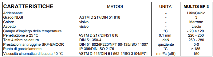 MULTIS EP 3 può essere anche utilizzato per tutti gli elementi dove si richiede un grasso per pressioni estreme di grado NLGI 3